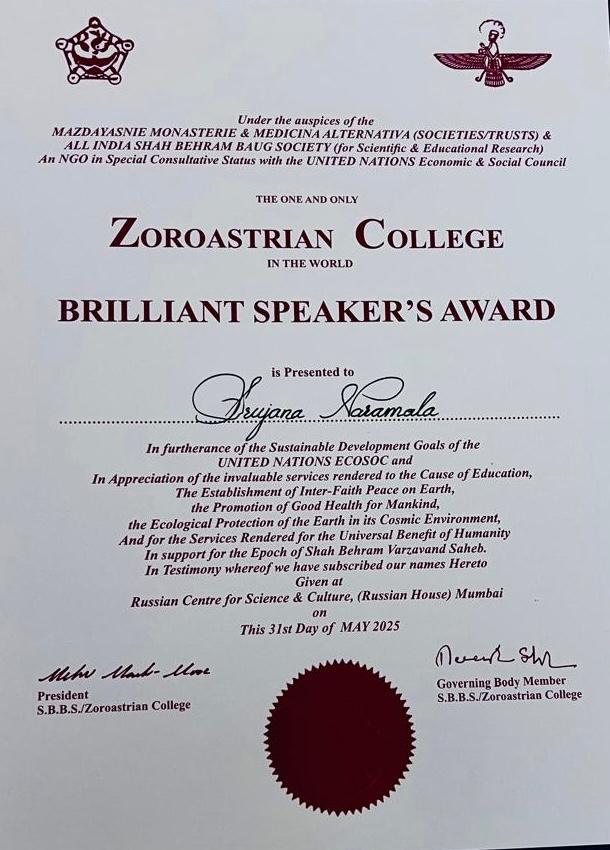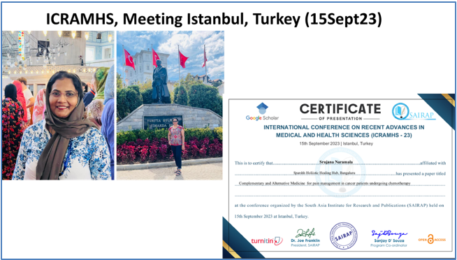 Dr. Srujana has actively contributed to national and international platforms, presenting research on: Aura Science & Diagnosis Spiritual Cleansing Techniques Complementary & Integrative Healing Therapies